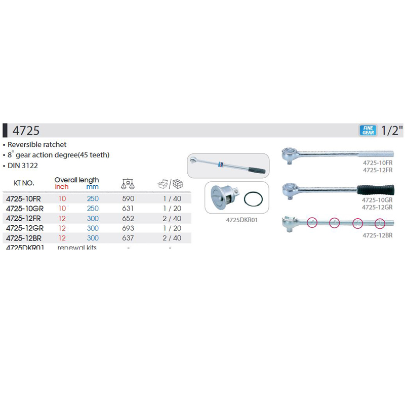 دسته جغجغه 1/2- 10″ درایو کینگ تونی 45 دنده روکش دار 472510G KingTony ساخته شده از جنس فولاد آلیاژی کروم وانادیوم