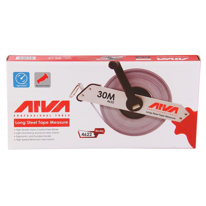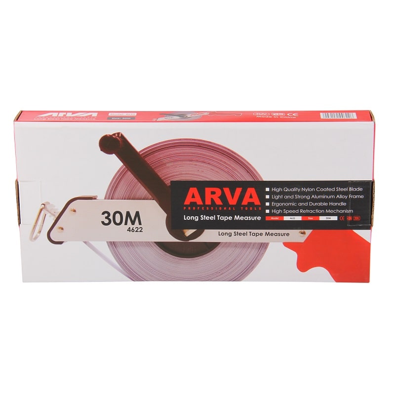 متر مهندسی 30 متری Arva آروا 4622 از ابزارهای اندازه گیری شرکت آروا می باشد که کاربردخانگی، ساختمانی، عمومی و صنعتی دارد. متر مهندسی 30 متری طرح ریشتر آروا در وزن 700 گرم تولید می شود. طول نوار 30 متر و عرض آن 12 میلیمتر در نظر گرفته شده است. جنس نوار فلزی یعنی استیل با روکش نایلون است و دارای درجه بندی بر حسب سانتیمتر می باشد. متر مهندسی 30 متری طرح ریشتر آروا مدل 4622 Arva یک رو طراحی شده است یعنی در یک طرف نوار اعداد ثبت شده است. این محصول دارای قفل نیز می باشد. اما فاقد بند و گیره است. از دیگر ویژگی های این متر می توان به قابی از جنس آلومینیوم و با وزن کم و دسته ارگونومیک با طول عمر بالا اشاره نمود. در ضمن محصول فوق دارای اهرم جمع کردن نوار متر با سرعت بالا نیز می باشد که از قابلیت های خوب این متر به حساب می آید.